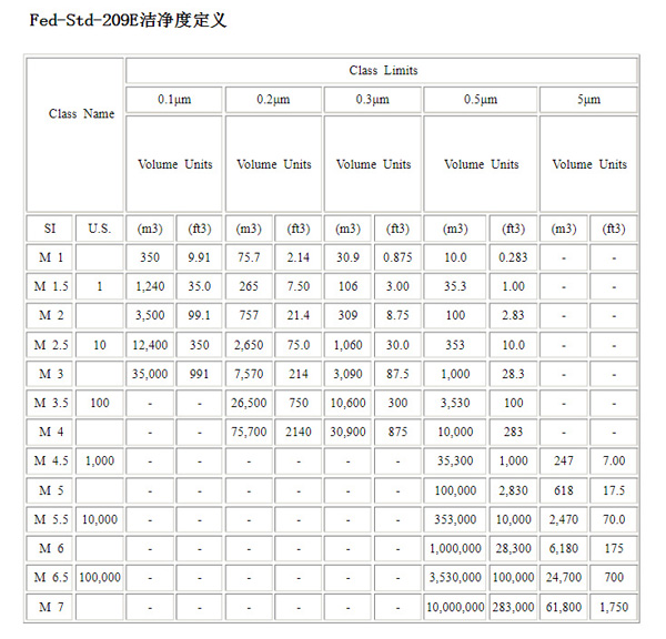 10級(jí)在0.2μm(塵粒尺寸在0.2μm或更大下,密度不大于75顆/立方英尺),1級(jí)在0.1μm(塵粒尺寸在0.1μm或更大下,密度不大于35顆/立方英尺)。