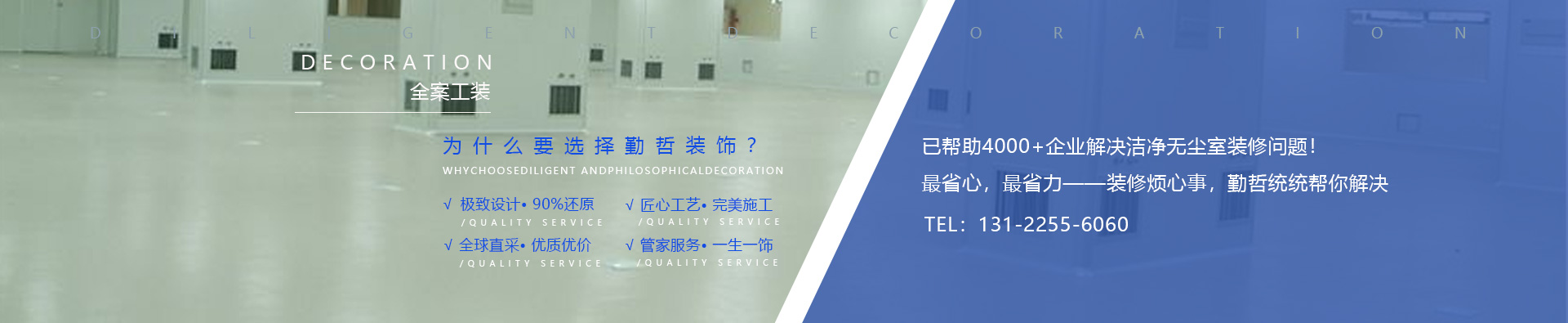 后期服務(wù)保障,免去裝修的所有后顧之憂(yōu)讓您放心更省心;用品質(zhì)說(shuō)話(huà),超長(zhǎng)售后,為每一個(gè)項(xiàng)目提供高效優(yōu)質(zhì)服務(wù),上海潔凈車(chē)間裝修信賴(lài)于勤哲裝飾。